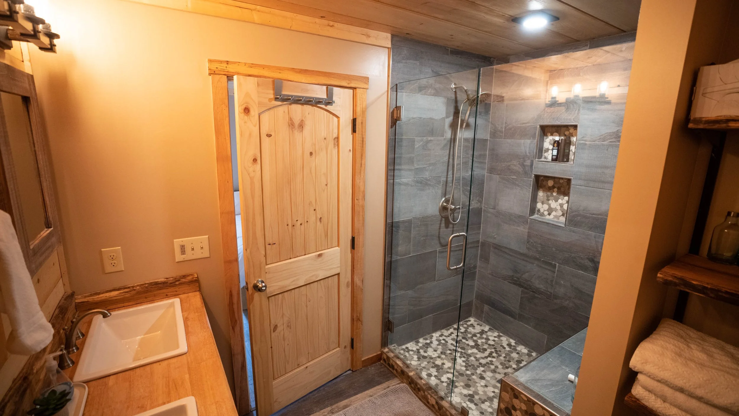 At the upper canopy level you’ll find the main bedroom suite, cozy living room and kitchen and one half bath. Treetop Level